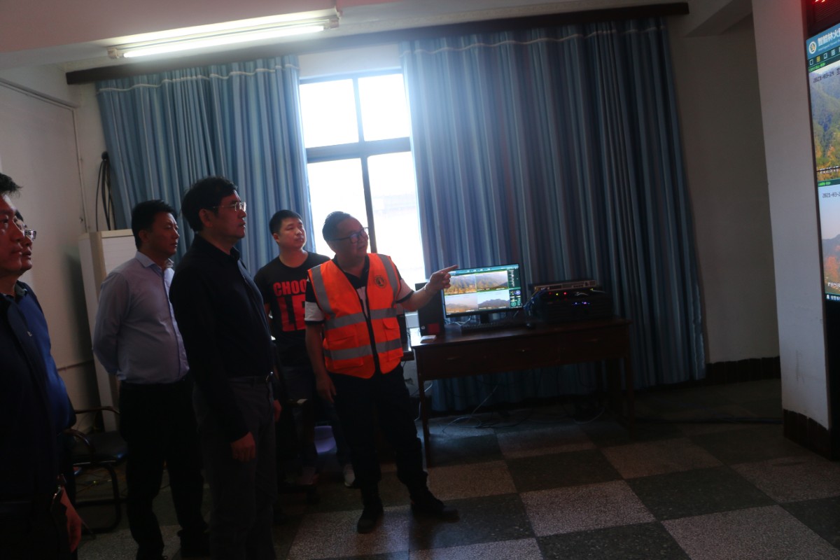 劉宏葆一行查看了普威國有林保護局森林防火預(yù)警平臺建設(shè)、指揮中心大屏系統(tǒng),詳細詢問了野外林火監(jiān)控系統(tǒng)的運行和管理情況,并聽取了匯報。